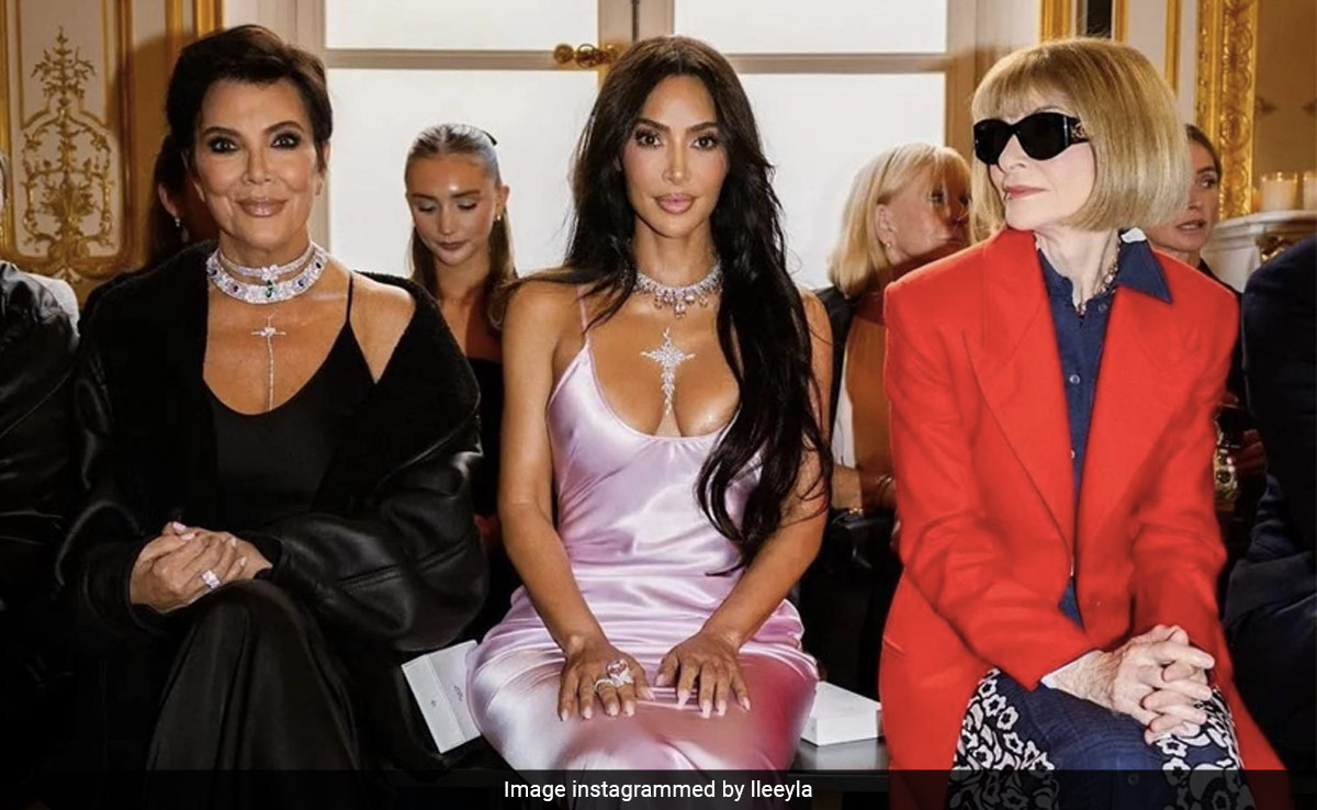 Kris Jenner is the backbone of the Kardashian-Jenner "klan" even on the fashion front. To supermodel Kendall Jenner, mother Kris Jenner and sister Kim Kardashian occupied front-row seats at Victoria Beckham's show at Paris Fashion Week 2023. Even on a regular day, Kim and Kris are the best-dressed women so they were bound to outdo their usual selves at the fashion show. Even though the mother-daughter duo picked slip dresses, the pair maximised the front-row view with their own unique versions of the basic trend. Kim Kardashian's lilac came with spaghetti straps and a plunging neckline. Kris Jenner also made quite an impression donning a black slip dress and layered with a black trench. But it wasn't just with their slip dresses but also with the stick-on jewels adorning their necklines that ought to make a matching moment for reality stars. They were also seen in similar diamond choker necklaces to go with the dress.