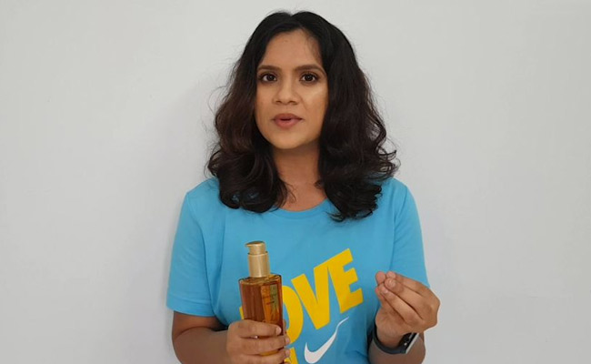 A single pump of the serum is enough to get a whiff of its fragrance; a floral blended scent that's quite strong. It doesn't only smell good in the palm but also imparts itself to the hair so that the tresses have a perfumed scent for a few hours. It is suggested to be used in multiple ways from before washing to after drying to pre-styling. It worked excellently for me during the styling and drying process. When heat styling my hair, a few drops of the serum lent more control in the process. I even ran a few drops through my hair right after styling and the shine was immense. On days when I was only air drying, some on damp hair was enough to find them smoother with reduced frizz. I did try it as a nourishing agent before washing but the difference wasn't apparent. The most noticeable way it affected my hair was the way it smoothened and softened it; it's as if frizz and flyways didn't exist. Having an oily scalp, I was cautious about how it would feel so I was pleasantly surprised that it felt light, non-greasy and like I was wearing nothing at all. Too good to be true might just actually be the truth with this hair serum.