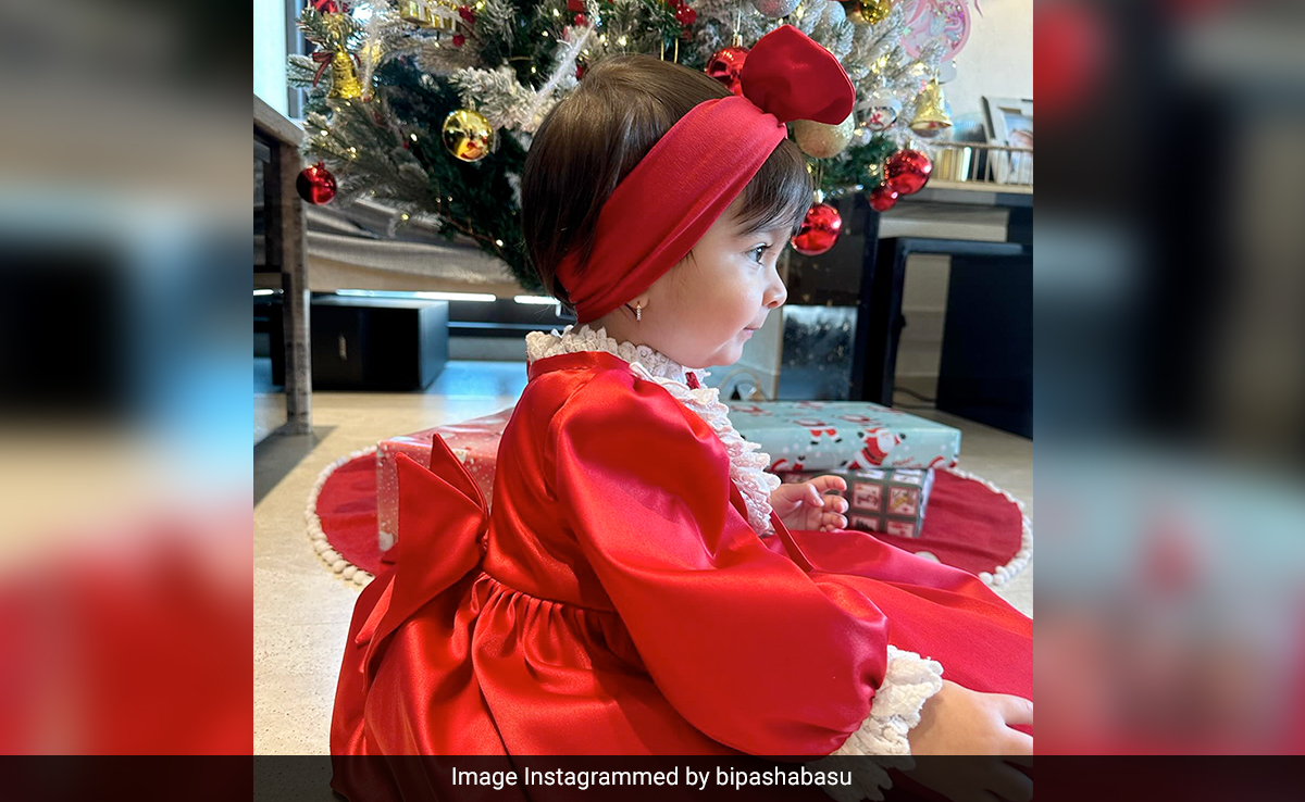 Some kids, by virtue of their existence, deserve to top Santa's nice list. Bipasha Basu's little doll, Devi is definitely one of them. While we've seen glimpses of her in adorable dresses twirling with her mama without a full face reveal, it's her Christmas gift to us to give us a closer look this time. Even though all we could see was a side profile of her face, her chic Christmas outfit was for all to see. Red is the colour of the season but it is also the colour of love and we love how adorable she looked in a little red satin dress. This little lady's Santa dress had white lace ruffles along the neckline and the sleeves and a large red bow at the back. She also wore a red bow headband so that Santa didn't miss out on spotting his favourite little elf.