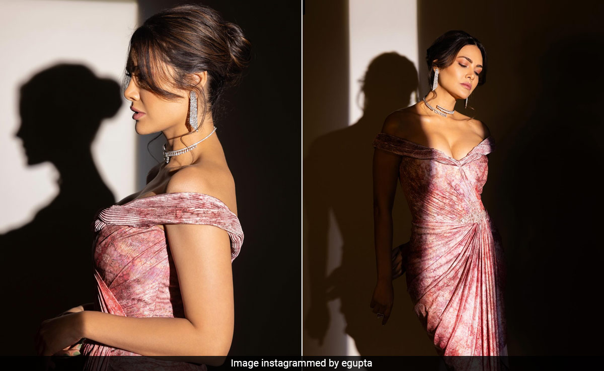 Esha Gupta's fashion mood board is a mix of feminine silhouettes and chic fits. We have no qualms in admitting that she slays in both. In her recent Instagram entry, the actress looked like a dream in a marble-dyed pink gown by the designer duo Shantanu and Nikhil. The off-shoulder number came with a structured off-shoulder neckline that gave all the right glam vibes. The bodice fit her like a glove and the golden embellishment on the waist added subtle drama. The crisp pleats at the hem were another interesting element that notched up her style Esha dished out modern princess vibes in the ensemble. Complementing her summer-ready OOTD was a pair of diamond danglers, a delicate choker, and an enormous ring.