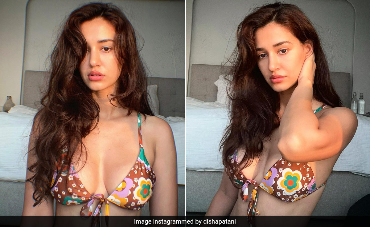 The fact of the matter is that Disha Patani doesn't need to be taking a dip in a pool or lounging on the seashore to set swimwear style goals. No siree. For this Bollywood star, simply the thought of a tropical paradise is enough to up the resort fashion quotient. We aren't complaining, of course. After all, who would when this one gets busy digging through her closet? In her latest post on Instagram, Disha Patani shared a series of photos wearing a printed string bikini. Featuring narrow straps and a tie-string detail in the centre, the prints were retro-themed florals in shades of brown, green and yellow. The selfies saw the actress strike a couple of poses in front of the camera. As if she were actually heading to the beach, she also left her hair loose and side-parted with her glowing complexion and pert lips on display. She captioned it "missing the" which inserting a tropical island emoji and while we're sure she is, at least we're getting some serious swimwear style out of it, right?