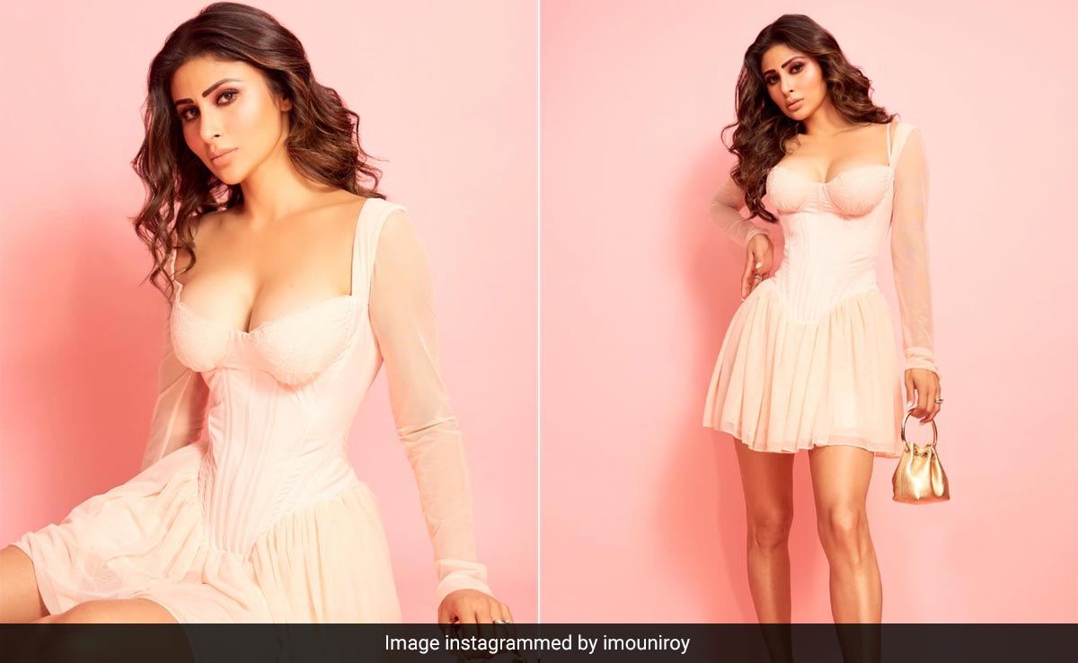 When it comes to date night style, trust Mouni Roy to give you the best fashion advice. The fashionista's Thursday mood called for a mini dress with a lesson on pastel trends. The actress picked a white number from the shelves of House Of CB. With a hint of cottage core trend, the dress featured a corset-style bodice extending to a pleated skirt-pattern finish. The net sleeves with threadwork on the cuffs have added an extra edge to the beautiful creation. Don't you miss out on the copper-hued Jimmy Choos and matching miniature bag that brought in the gleam. Mouni's loosened hair, styled in voluminous curls raised the glam bar. A dewy base with glossy lips and subtle smokey eyes, helped Mouni achieve that glass-like skin.