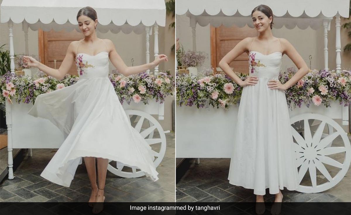 Summer days are almost here and dressing up cute can be a real hassle with heat waves on the rise. We love a refreshingly on-trend yet relatable take on fashion and trust Ananya Panday to answer all your fashion questions for the season. Her exquisite on-the-go style has always been captivating. After making a statement with her ultra-glam quotient at the Dior show and NMACC in Mumbai, Ananya is yet again at it but with a very casual twist to it. For Alanna Panday's recent bridal shower, the actress took a creative route as she twirled in a beautiful flared white halter dress that came with a sleek pattern, which was connected with a sweetheart neckline. The colourful magenta and gold-toned embroidered work on one side of the dress added a pop of colour. Her pick from Saaksha and Kinni came right in time for the summer breeze and we are truly in awe of it.