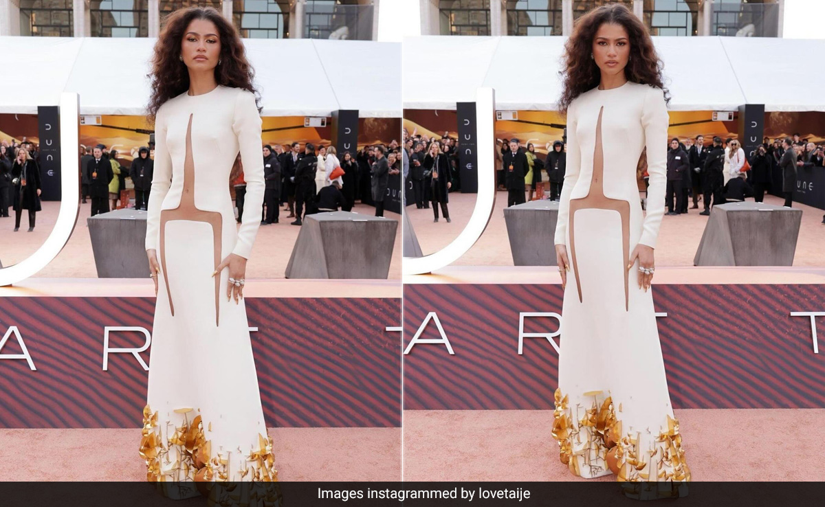 Zendaya has championed statement fashion on the red carpet. While her solid status as the queen of revisiting archival fashion stands strong, her trendy style too never fails to impress. Her trophy-worthy style game is not limited to the red carpet and recently, it was the Dune: Part 2 movie premier that had Zendaya put her best fashion foot forward. Her character in the movie is already off to a strong start with method dressing leading the bandwagon for the press tour. The premier in New York was, once again, a fashionable affair as Zendaya arrived in style. She rocked a couture gown from Stephane Rolland's Spring/Summer 2024 collection. She slipped into a sleek white silhouette that was itself a statement-worthy pick. Styled by Law Roach, Zendaya's outfit was a fitting choice as it came with a bold cutout running from the center of the bodice down to the waist and thighs. The sculptural gold details on the hemline notched up the look. For beauty, Zendaya kept it minimal with nude glam while her metallic nails matched the aesthetic.
