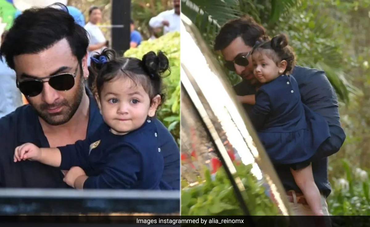 This midweek was a jolly time for the Kapoor family as they celebrated Kareena Kapoor and Saif Ali Khan's younger son Jeh's third birthday and it indeed was a stylish celebration. The star-studded evening witnessed close family and friends in attendance and among them was Ranbir Kapoor with his daughter Raha. Cute is absolutely an understatement to define Raha's charm. The daddy-daughter duo was spotted at the birthday party as they marked a stylish moment in well-coordinated navy blue looks. Raha looked her chic self in a dark blue dress that featured a flared hem. Her two ponytails and charming personality perfectly completed her OOTD. Ranbir twinned with his daughter in a blue t-shirt paired with beige pants to look his stylish best.