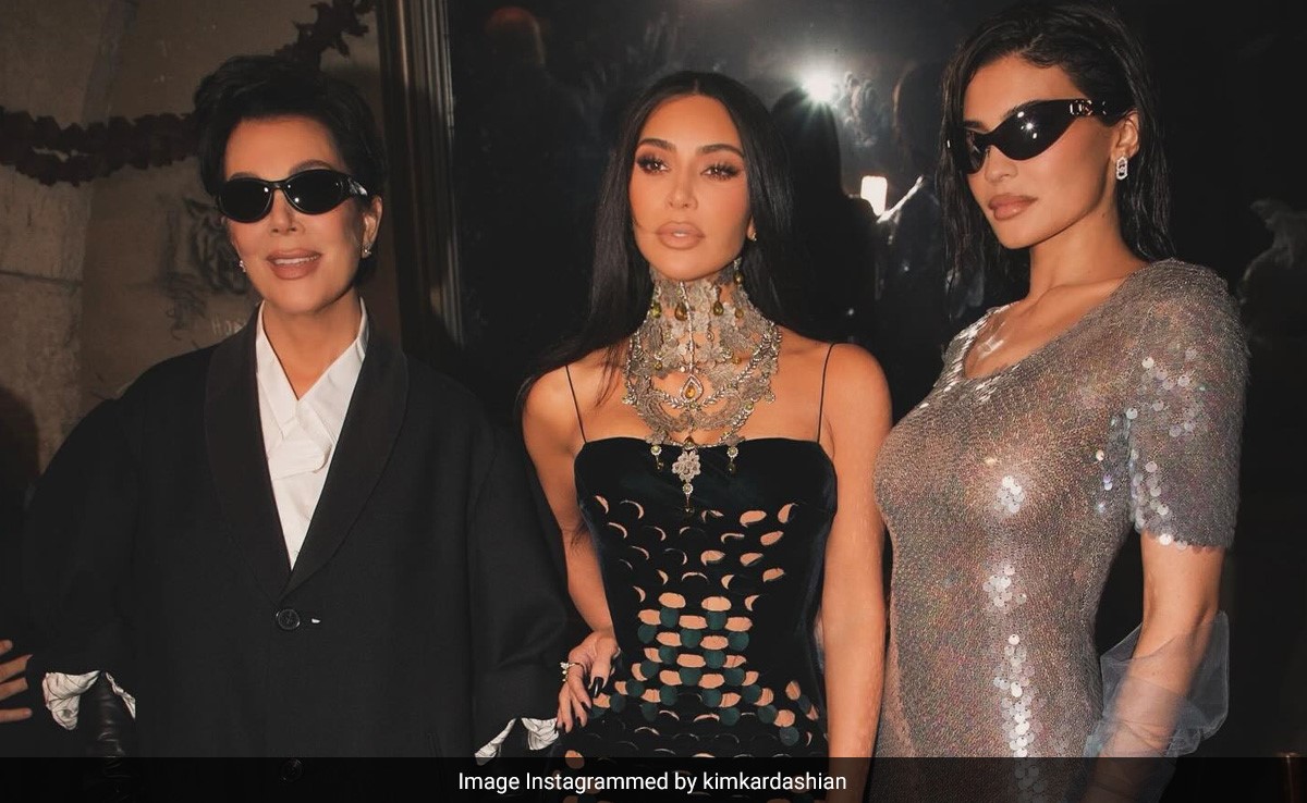 Paris Fashion Week 2024, which was graced by many global icons and prominent personalities, was an absolute visual treat for fashion enthusiasts. It was not just the designer wear showcased by the participating designers that caught our attention but the presence of fashionable attendees too. Guess who was seen in the front row of Maison Margiela's show yesterday? It was Kim Kardashian with sister Kylie Jenner and mom Kris Jenner making an unmissable presence in exquisite looks. Kim wore a stunning bodycon silhouette and looked breathtaking. The narrow strap, black floor-sweeping sheer gown was embellished with circular cutouts all over and featured a cinched waistline which accentuated Kim's well-toned body. The diva added a dramatic edge to her look with an elaborate silver choker necklace which had an intricate pattern. She opted for glam makeup with kohl-laden smokey eyes, shimmery eyelids, well-structured contours and nude lip colour and left her tresses loose in a sleek manner.