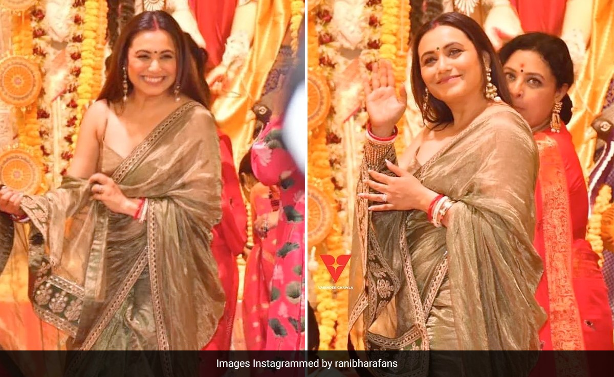 Durga Puja celebrations are going on in full swing in the country. Decorated Durga pandals, finger-licking delicacies, festive fashion, vibrant culture, and the spirit of festivities have embraced the city with open arms. Adding up to the glam of the celebrations, Bollywood celebrities are setting examples of festive fashion. Amidst all the glory, we have Rani Mukerji gleaming in shimmery gold. The actress looked phenomenal as she donned a shimmery sheer saree for Durga Puja celebrations in the city. The saree featured embellished borders and a lot of glitz. Rani complemented the drape with a matching spaghetti-strapped blouse with a deep V-neckline. She opted for a pair of studded dangling earrings for accessories. Kohl-laden eyes, ample mascara, well-contoured cheekbones, a matte lip colour with a bindi perfected Rani's makeup, as she left her hair strands loose.