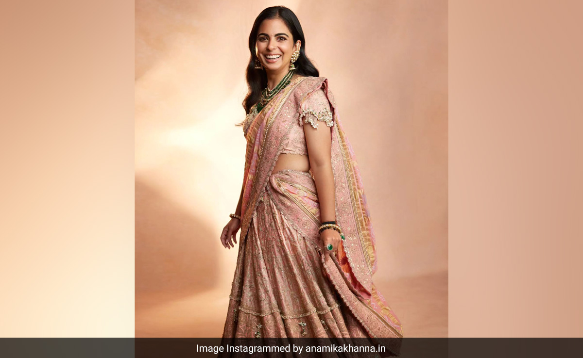 Isha Ambani's carved niche in the style sphere is perfect to give style fashion fanatics a run for their money. Her opulent ethnic wardrobe will inspire you to reinvent your own. Isha Ambani has a closet that never fails to give elegant fashion a trendy spin. Her extensive wedding guest wardrobe comes with multiple designer silhouettes that have redefined classic style like never before. We love her easy-going dresses and red carpet style but her traditional fits hit different. The Ambani clan gears up for Radhika Merchant and Anant Ambani's pre-wedding festivities and ever-so-stylishly. Isha Ambani is truly leading the wedding guest fashion bandwagon as she turns up looking like a million bucks in a beautiful blush pink lehenga. Her pastel pink number seemed like a perfect choice for the ceremony. The gold-toned intricate embroidered details added all the glam to her attire. She brilliantly styled her look with those beautiful emerald jewels that hit the fashion note right. Rosy glam and neat open tresses sealed the beauty deal for her.