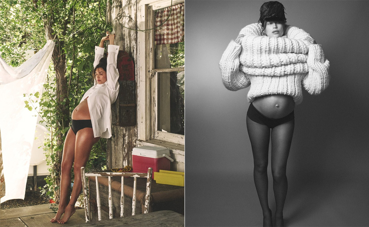 Next up, she gave us a dose of casual style in a chic white shirt that was unbuttoned from the bottom. The supermodel paired the look with black bikini bottoms. With her baby bump on display, her fuss-free look was a solid ten.