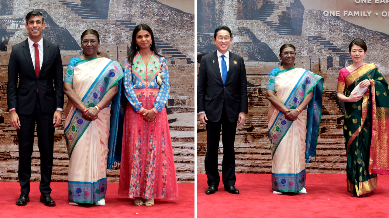 With the G20 events coming to a close, no better time than now to reflect on the ethnic fashion that took centre stage over the weekend. British Prime Minister, Rishi Sunak's wife, Akshata Murty led the ethnic fusion fashion parade through the weekend, making waves with her elegant, subtle style that spoke volumes for traditional craftsmanship and sustainable fashion. But last night's G20 gala dinner, hosted by President Droupadi Murmu at the Bharat Mandapam, saw more than a few first ladies and women leaders answer the call of desi fashion. Here's how it turned out.