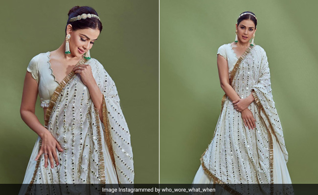 Genelia D'Souza is an absolute style icon and for all the right reasons. She never fails to appeal us with her traditional classics which are a total winner. And this time she is making heads turn in a beautiful ivory lehenga by Abhinav Mishra. The stunning ethnic number featured mirror work detailing which amped up the attire. She paired a pretty backless choli with a stellar flared lehenga skirt and the heavy-duty dupatta added a romantic flare. Her choice of minimal glam and statement jewels made it a standout ensemble.