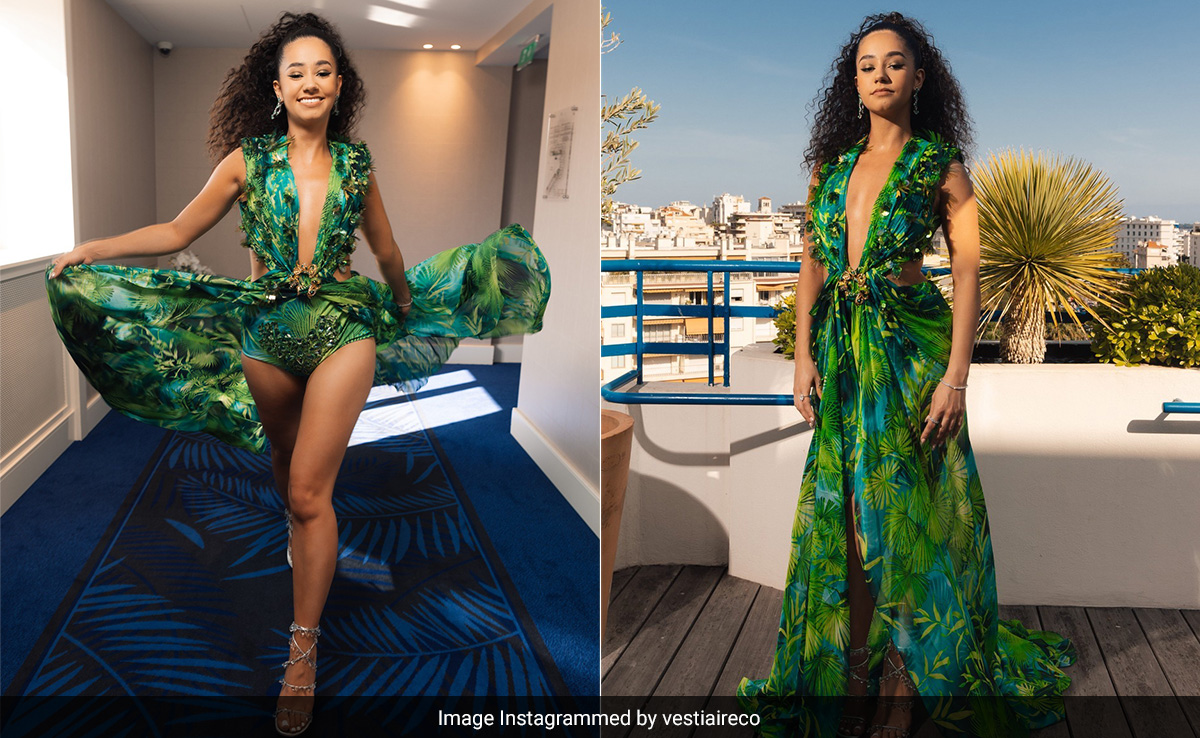 Many debutants exhibited great fashion sense on the red carpet of Cannes 2023. Of them all, French author and YouTuber Lena Mahfouf marked her attendance at the prestigious event for the first time. Her choice of style on the red carpet has struck a chord with us. For the amfAR Gala in Cannes, Lena put her faith in Versace. The Italian fashion house chose a tropical chic look for the star. Lena wore the iconic look in gorgeous hues of greens. The sleeveless outfit featured cutout detailing on her midriff region that extended into a train. She styled it all with matching high-waist hipster bottoms. The dress was accentuated with an overall tropical print and minimal feather detail on her midriff region. In 2000, the iconic Versace silk chiffon dress was worn by Jennifer Lopez to the Grammy awards and later, again in 2019 for Versace's Spring 2020 runway show in Milan.