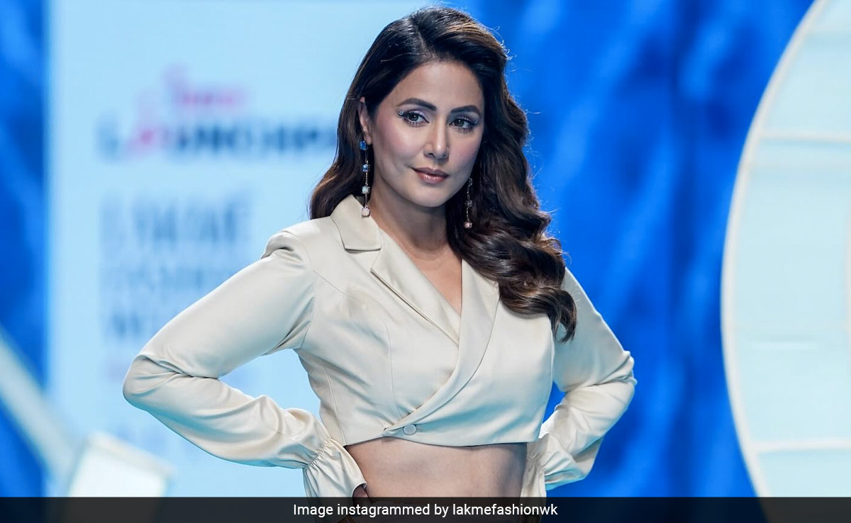 Hina Khan is a chameleon in the world of fashion, seamlessly transitioning from ethnic to contemporary, from bold and dramatic to elegantly chic. Fashion enthusiasts look up to her for all the right reasons. The latest chapter in her fashionable journey took place right on the runway of Lakme Fashion Week. A satin wrap-around jacket that featured a chic cropped length, lapelled collar, and full sleeves is what she picked for a chic runway strut. Complementing the jacket was a wrap-around pink skirt adorned with colourful prints on one side and a daring thigh-revealing design on the other. Hina's subtly curled tresses added an extra layer of grace to her overall look. When it came to accessories, the star chose a pair of dangling earrings. Her makeup was flawless with a dewy base, glossy pink lips, rosy cheeks, and lashes coated with mascara. To wrap it all up, pointed heels were the cherry on top of her ramp-ready appearance.