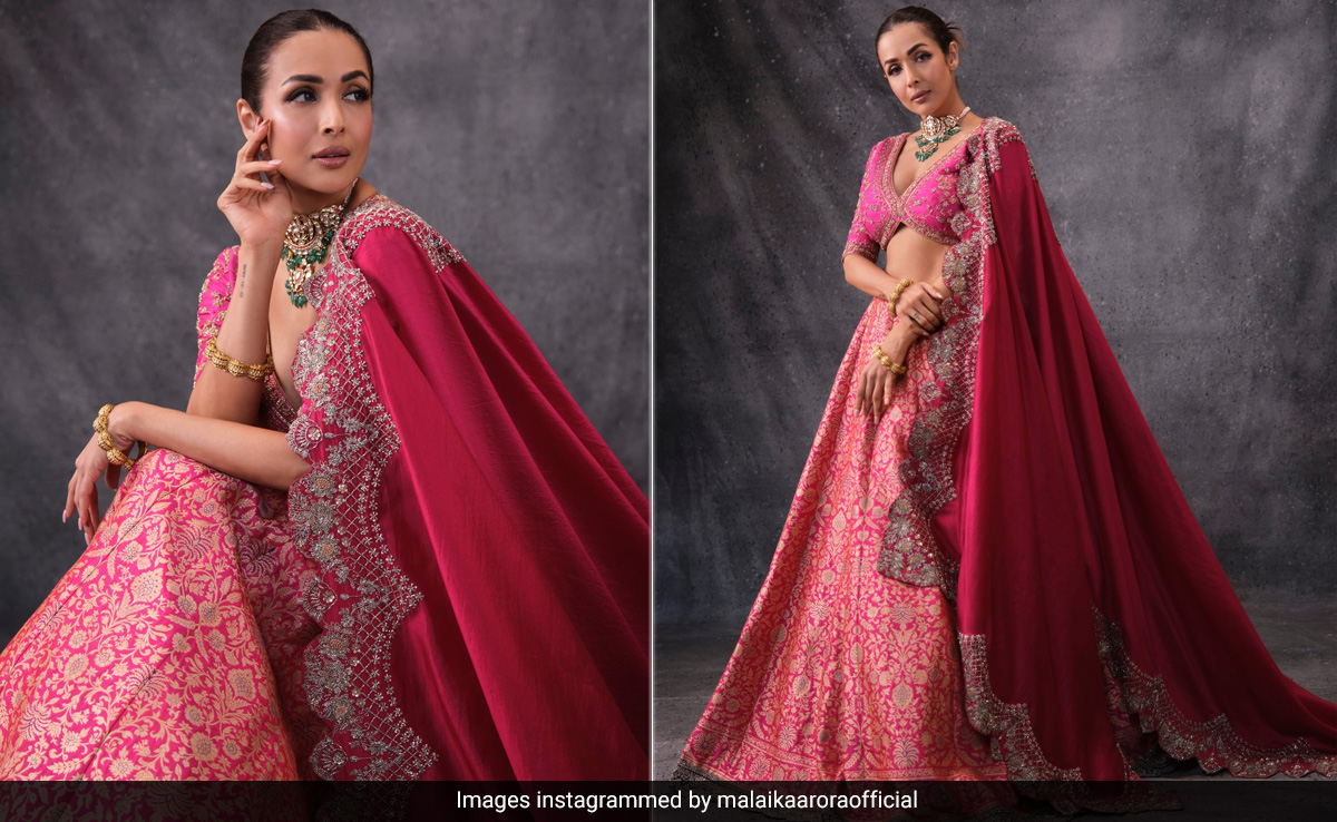 Malaika Arora is a true fashion magician, effortlessly shifting between Indian and Western styles with her flawless physique. Her recent ethnic outing will leave you enchanted too. Malaika Arora recently turned heads in a stunning two-toned pink lehenga from Jayanti Reddy. The lehenga featured the brand's signature silver zari work, which added a touch of opulence to the ensemble. The two shades of pink were perfectly balanced, with a lighter, softer pink complemented by a deeper, richer hue. This blend of colours, along with the meticulous embroidery, made the outfit a visual treat. Her choice of accessories—a statement choker and a bangle—further enhanced the traditional yet contemporary appeal of the outfit.