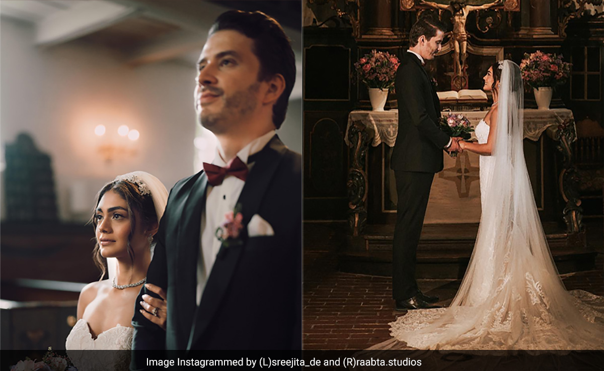 Sreejita De got married to her long-time boyfriend Michael Blohm-Pape in a white wedding, which was officiated in a stunning church in Germany. For the big day, Sreejita looked gorgeous in a pristine off-white gown. The strapless number was elevated with a sweetheart neckline, intricate thread detailing as well as a train. A floor-sweeping white veil was beautifully held on her head with stylish floral headgear. Diamonds were Sreejita's best friends on her special day. A delicate necklace and minimalistic earrings looked elegant. Her tresses were secured in a bun, with a few strands were left open on both sides to give a dramatic framework to her face. For the glam, Sreejita stayed loyal to the muted tones. Her glamorous makeup consisted of matte skin with a tint of coral hue on the cheeks, a bold eyeliner complemented by the voluminous mascara-laden eyelashes, and nude brown lips. The bride also carried a bouquet of multi-hue flowers in the shades of pink, purple and white. On the other hand, Michael Blohm-Pape decked up in a classic black suit, which was teamed with a crisp white shirt and a matching pocket square. A maroon bow-tie and a floral brooch rounded off his sharp look. The photographs showcased Sreejita and Michael looking at the altar in the church, and sealing their union with a kiss. “Today we celebrate the beginning of forever, hand in hand,” Sreejita De captioned the post.