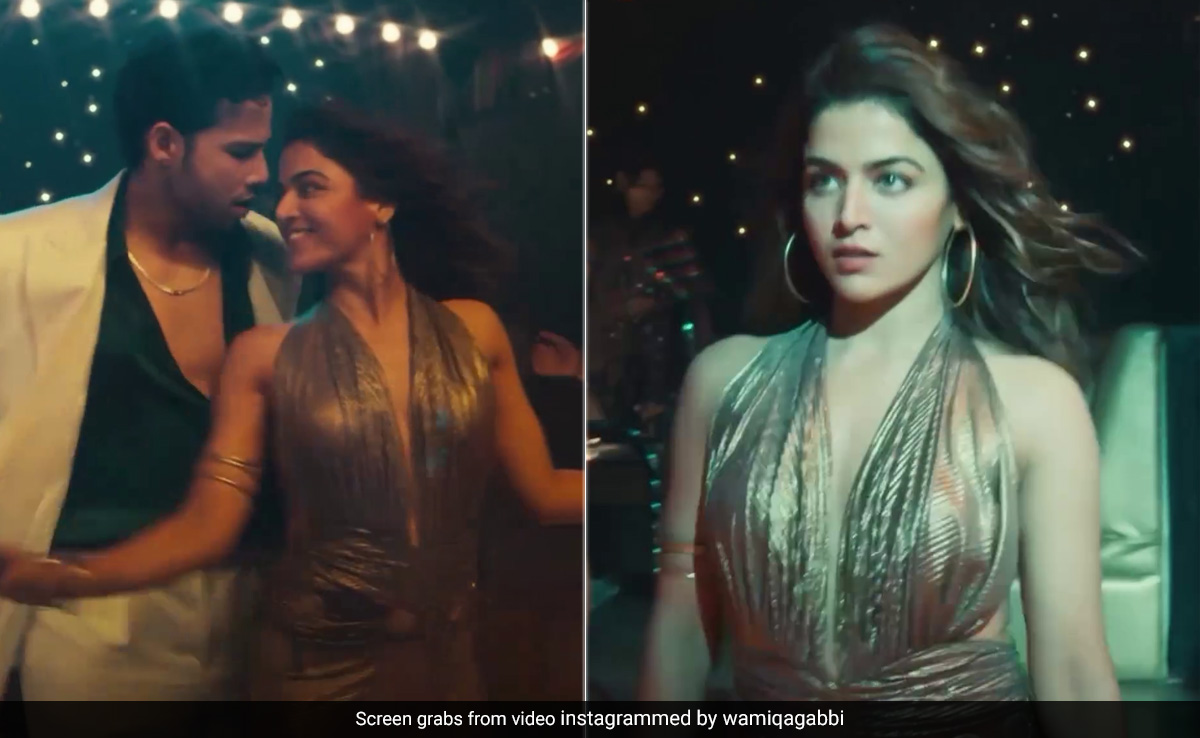 Siddhant Chaturvedi has just dropped his new single and fans can't keep calm. Ittefaq features Siddhant alongside Wamiqa Gabbi. TBH, the music video is a perfect amalgamation of sassiness fused with snazzy, and its complete credit goes to Wamiqa Gabbi's OOTD. The actress picked a metallic gown that was loaded with oomph elements. It won't be wrong to say that the gleaming gold number added all kinds of glitz to the music video. The halter neck gown featured a bodice with a deep-cut V neckline. The backless number featured metal embellishment around her midriff region. The figure-hugging waist flew down to form a flowy hem with a risqué thigh-high slit. Wamiqa added a chic pair of massive ear hoops, which let her take the minimal route. A few cuff bracelets in one hand and rings rounded off her look stylishly. A pair of shimmery strappy heels was a stunning touch. Wamiqa left her curled tresses loosened.