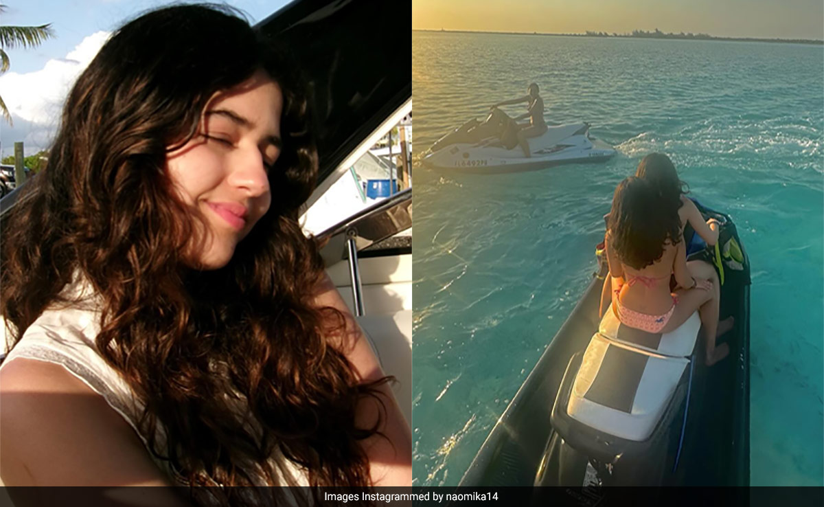 Rinke Khanna's daughter Naomika Saran is a travel buff and her Instagram feed is proof. The diva loves exploring new places and consistently shares her holiday adventures with the online family. Recently, Naomika and her BFFs have packed their bags and jetted off to the Turks And Caicos Islands for a beach escapade. In her post, one of the images featured Naomika at what appeared to be a luxurious stay hotel. Her knitted white short dress added a touch of sass to her travel OOTD. Another image showed her friend and her taking in the sunset at sea on a jet ski. Naomika also shared another picture on a jet ski next to the famous La Famille Express shipwreck. Additionally, there were shots of the diva and her friends doing cartwheels on the beach and an image showing a reptile that looked like a chameleon.