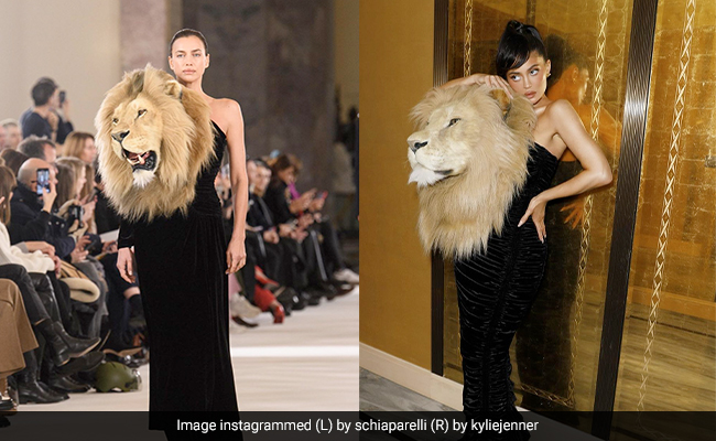 Then came the time when supermodel Irina Shayk walked down the runway and that's when we did a double take. Irina wore a black midi dress which was accented with the hyper-realistic bust of a lion draped across her chest. Also on the runway was Naomi Campbell in a black long sleeve coat with the bust of wolf on her shoulder and a third model wearing a spotted grey dress with the bust of a snow leopard, bang in the centre. Though they appear extremely life-like, the busts of the wild animals were man-made, hand-sculpted and did not harm any animals in the process. The designer says in the caption, "The leopard, the lion, and the she-wolf-representing lust, pride, and avarice in Dante's iconic allegory - in hand sculpted foam, resin, wool and silk faux fur, hand painted to look as life-like as possible."