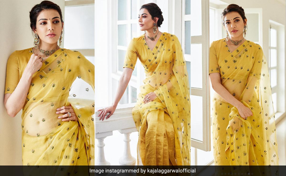 Kajal Aggarwal sets the perfect summer mood board with her colourful wardrobe. Right now, the actress is super busy with the promotional spree of her upcoming film Satyabhama. But she continues to wow us with her stunning looks and this time, she has blessed us with a gorgeous ethnic style. Kajal draped herself in a bright yellow embellished saree, coming from the shelves of the Anavila clothing brand. The ethereal saree was adorned with hand-embroidered floral butis. The see-through drape was crafted from linen zari along with organza in the pallu and silk finishing on the edges, making it a perfect blend of modern and classic. The actress teamed the drape with a matching blouse featuring similar butis around the neckline and its short sleeves. Kajal simply made her look a ten on ten by styling it with an oxidised choker-style jewellery set with statement earrings. She completed her look with a side-parted low-braid bun. Her pretty pink glam went perfectly with her saree and the kohl-rimmed eyes added the ethnic touch.