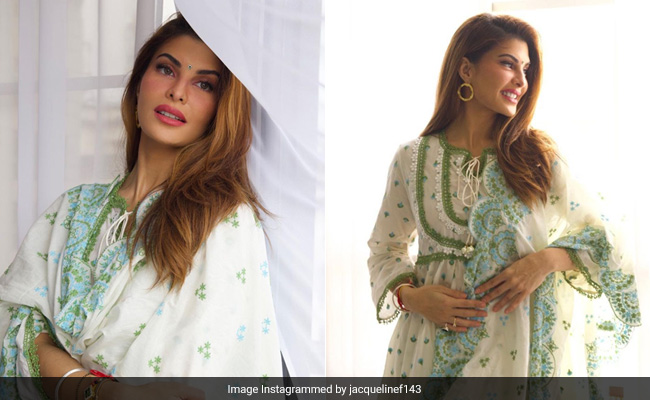 No one can beat Jacqueline Fernandez when it comes to fashion. The diva never shies away from putting her best sartorial foot forward. Today, we are going to talk about her Independence Day outfit. Jacqueline looked stunning in a beautiful white and green salwar suit set. Her long white kurti featured embroidery work, green lace detailing around the chest and borders. We could also see a tie-knot detailing in the front and a keyhole neckline. She completed her traditional look with a nice dupatta styled on her shoulder. The dupatta with scalloped borders, green lacework and embroiderey looked perfect on Jacqueline. She accessorised herself with hoop earrings, bangles and rings. The actress accentuated her overall appearance with pink lips and a tiny matching bindi on her forehead. Her side-parted straight hair was left open.