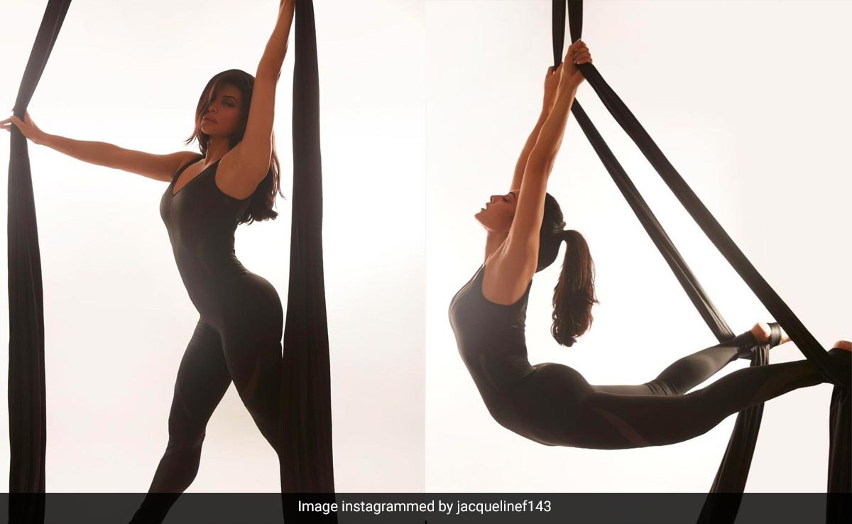 It is difficult to keep up with the yoga girl Jacqueline Fernandez and her envious physique. The actress, even during her workout sessions, never fails to leave us swooning with her fashion choices. Jacqueline dropped a bunch of pictures on Instagram, featuring her performing aerial yoga. However, our eyes were glued to her stunning sleeveless catsuit. The ensemble hugged Jacqueline in the right places and simply accentuated her curves and toned body. Mesh panels around the bust and legs added a stylish element to her fit. She left her carefree tresses open and ditched the glamour for a core-strengthening session.