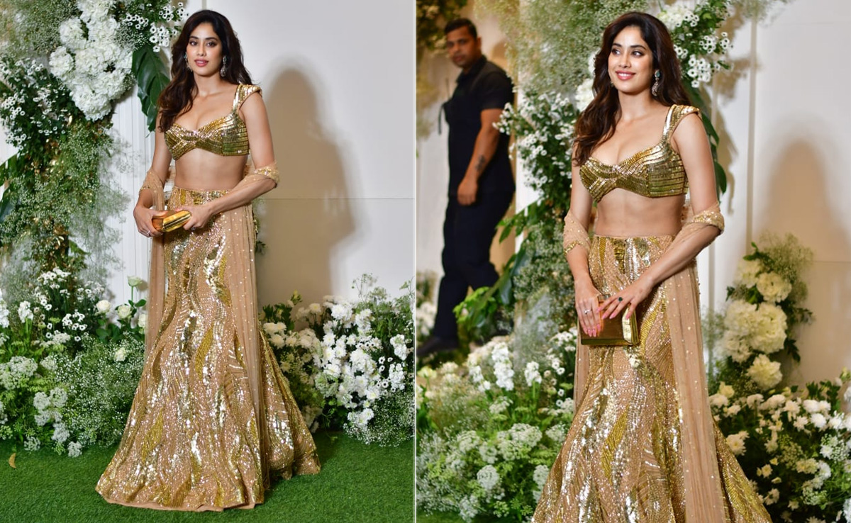 Going by how much Janhvi Kapoor adores sparkle, we're inclined to believe that Diwali must be her favourite time of the year. Like glimmering fireworks and glowing diyas, sparkle is a mandatory even in Diwali dressing. For someone like Janhvi Kapoor whose shines in sequins all year through, that's the perfect excuse to dial it up further. Manish Malhotra threw a starry Diwali party in Mumbai last and the Bollywood actress being one of his muses, was obviously in attendance. Setting the tone for the rest of the Diwali festivities in the weeks ahead, Janhvi Kapoor stepped out in a gold sequin lehenga.