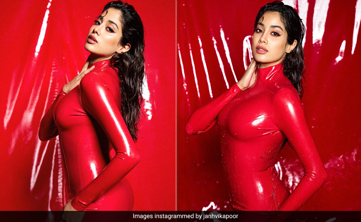 After serving an array of traditionally chic looks, Janhvi Kapoor is back at her glitz and glam game. Her striking departure from lehengas and sarees often leads up to a trendy fashion treat. The actress is embracing the spirit of the Holiday season and indeed, in the hottest way. Janhvi Kapoor's idea of season's greetings is definitely much different and more stylish than others as she serves it hot in a striking red look. Janhvi's penchant towards monochrome fits has always been reflected in her wardrobe choices. Recently, the actress turned to the chicest trend as she soaked in the festive fervour in a red latex catsuit. It is safe to say that the actress is raising the mercury levels and her latest look is proof. Janhvi is trolled on the internet for being inspired by Kylie and Kim's fashion sensibilities but that doesn't stop her from carving her own niche for her "season's greetings" this year. She nailed the beauty department too with her dewy nude glam that consisted of solid winged eyeliner, glossy lips and wispy lashes. But, oops, wait a minute, doesn't this look remind you of a certain pop sensation's iconic look from the year 2000? Read on to find out who we have in mind.