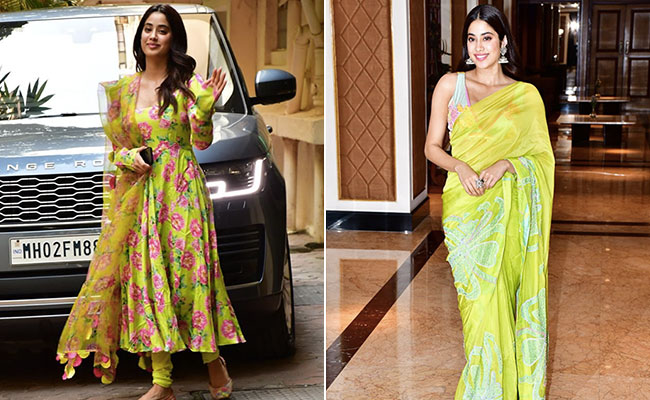 Festive fever in India demands for impeccable ethnic fashion. It is time to get the sarees, lehengas, shararas and ghagras out of the wardrobes. It's not just us, but the Bollywood stars too, who follow the festive dressing route. Bollywood celebrities have given us major dressing goals ever since the beginning of the festivities this year. But according to Janhvi Kapoor you do not need sparkles and sequins every time. Bright neons and floral prints are equally festive if not more. And she proved that by wearing some gorgeous neon numbers recently for Bhai Dooj and the promotions of her upcoming film, Mili that coincided with the festive season.