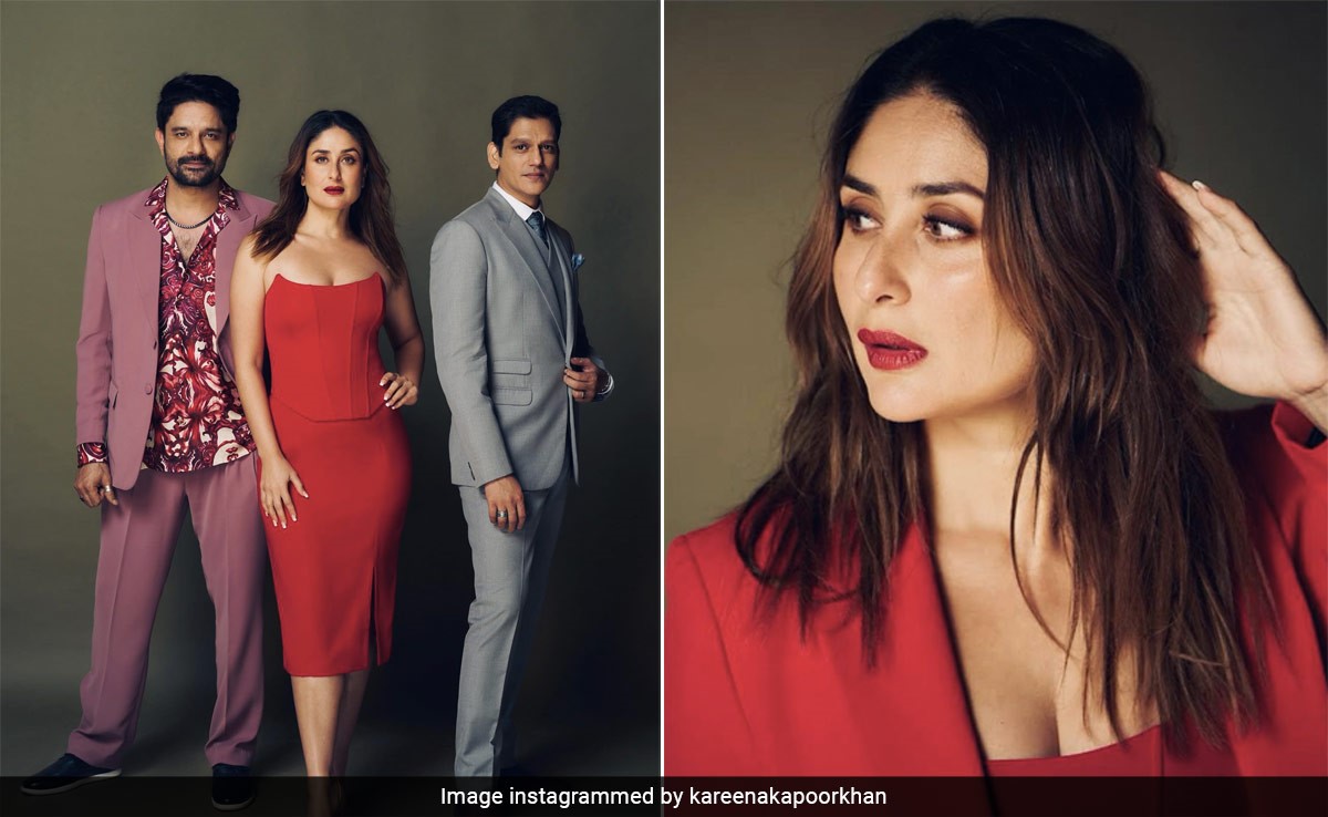 Kareena Kapoor along with Vijay Varma and Jaideep Ahlawat will soon be seen in Jaane Jaan which will be released in September 2023. We have loved Kareena's fashion and impeccable wardrobe choices for the many decades she has been in Bollywood. Her style is incomparable, and her latest post on Instagram is just proving just that. In a gorgeous tube midi dress, Kareena looked effortlessly stylish. The tube outfit had a corset bodice, followed by an A-line bottom and a stylish cut at the side. She even completed her monochrome dressing with a hot red full-sleeved blazer. For makeup, she took the glam route with a bold red lip colour, ample mascara, kohl-laden eyes, well-contoured cheeks, and a lot of charm. Kareena's no-accessory look was accompanied by a pair of nude pointed heels.