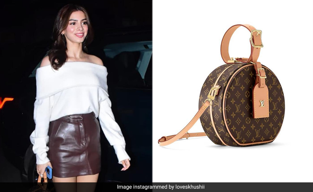 Khushi Kapoor's take on fashion is a class apart. So every time we seek an over-the-top inspiration, we land on her social media timeline. It won't be wrong to say that she knows how to push the fashion bar higher. Last night was no different when Khushi attended the birthday bash of her BFF Aaliyah Kashyap. For the party, The Archies actress glammed herself with the chicest picks. The actress created a stunning colour palette with a pristine white H&M sweater and chocolate brown latex mini skirt. The off-shoulder sweater featured full sleeves and a baggy fit. Khushi tucked it in the Babaton Chisel skirt from the shelves of Canadian fashion house, Aritzia. The actress styled her gorgeous look with Zara's vinyl transparent mules and carried a Louis Vuitton petite boite chapeau bag, which according to their website could cost you Rs 4,60,000. With the dewy base, pink lips and coral-blushed cheeks, Khushi gave herself a glamorous final touch.