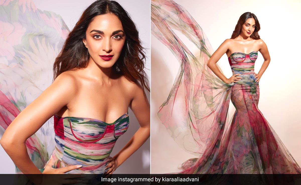 Currently, it's Kiara Advani who is topping the fashion charts in all of Bollywood. The Bollywood actress took to Instagram to share a series of pictures from her latest photoshoot. In it, she is seen cutting a striking figure in an ensemble that's worthy of being featured on the red carpet. Kiara picked a strapless watercolour patterned dress with a floral design. It was enveloped in layers and layers of tulle and featured a mermaid-esque silhouette with a train and flowing sash appearing from the side. Definitely a fresh take from the monochrome numbers we've spotted in the celebrity sphere right now, this is exactly how you make an impact. With it, the actress styled her hair in waves and wore a burgundy-shaded makeup look, which matched the tones of her outfit.