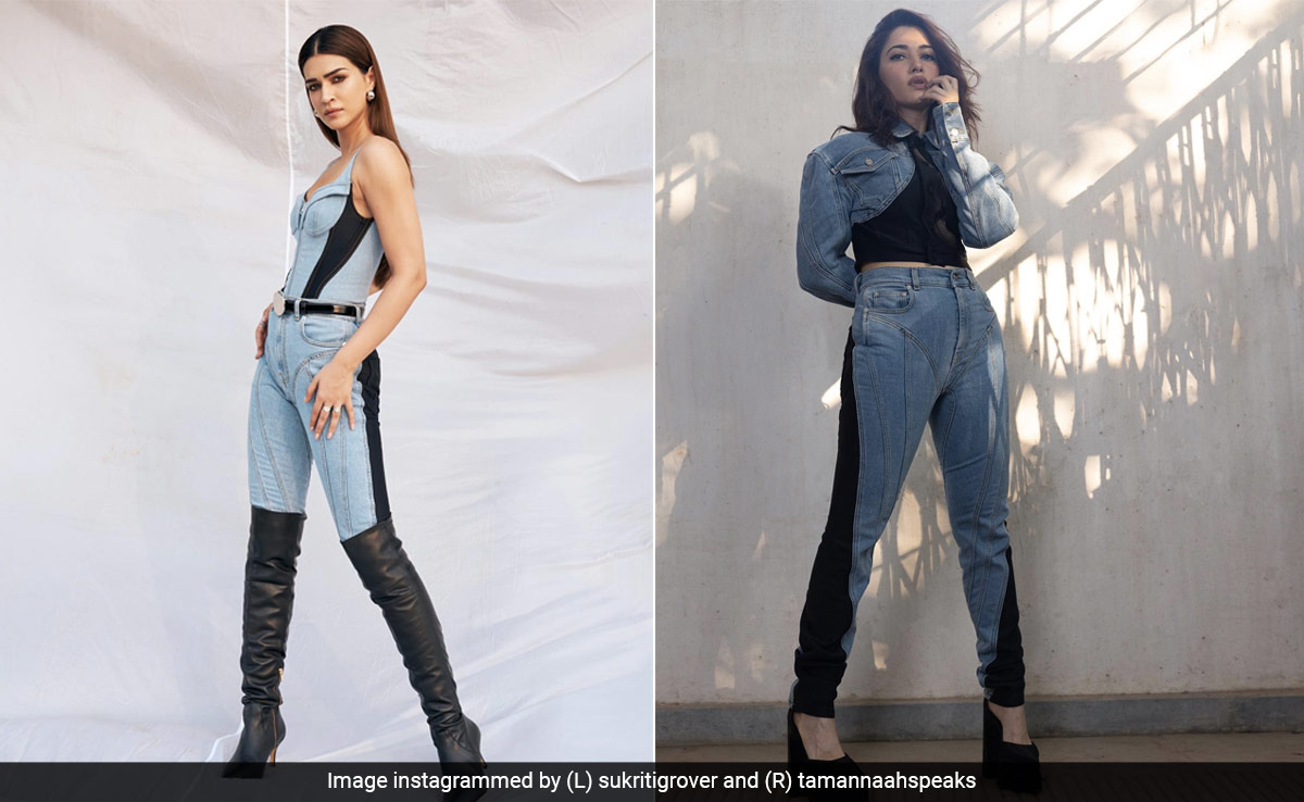 Don't we all love it when we coincidentally twin with our friends or run into someone wearing the very same outfit at a mall or a restaurant? As much as we are likely to twin with people, especially in trendy outfits, do you often think that Bollywood celebrities sometimes end up wearing the same or similar clothes? The answer to it is, yes. Celebrities too can love the same things and end up wearing similar outfits at different occasions. The same happened with Kriti Sanon and Tamannaah Bhatia. They both wore very similar denim outfits from the clothing label Muggler and looked exceptionally stylish.