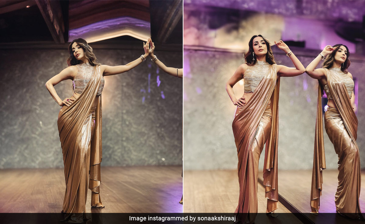 From a saree to a sarong, Malaika Arora can make anything look good. On the occasion of Diwali this year, the multi-hyphenate stepped out in a gold saree from the shelves of Label Sonaakshi Raaj. The liquid gold tasselled saree came with a heavily embellished blouse. She allowed the ensemble to do all the talking and kept the hair and makeup simple. Malaika Arora left her hair open in soft waves and for accessories, she opted for a watch and a pair of oversized earrings. For makeup, Malaika stuck to earthy tones and opted for smokey eyes and nude lips. The touch of highlighter only tied the festive makeup look together.