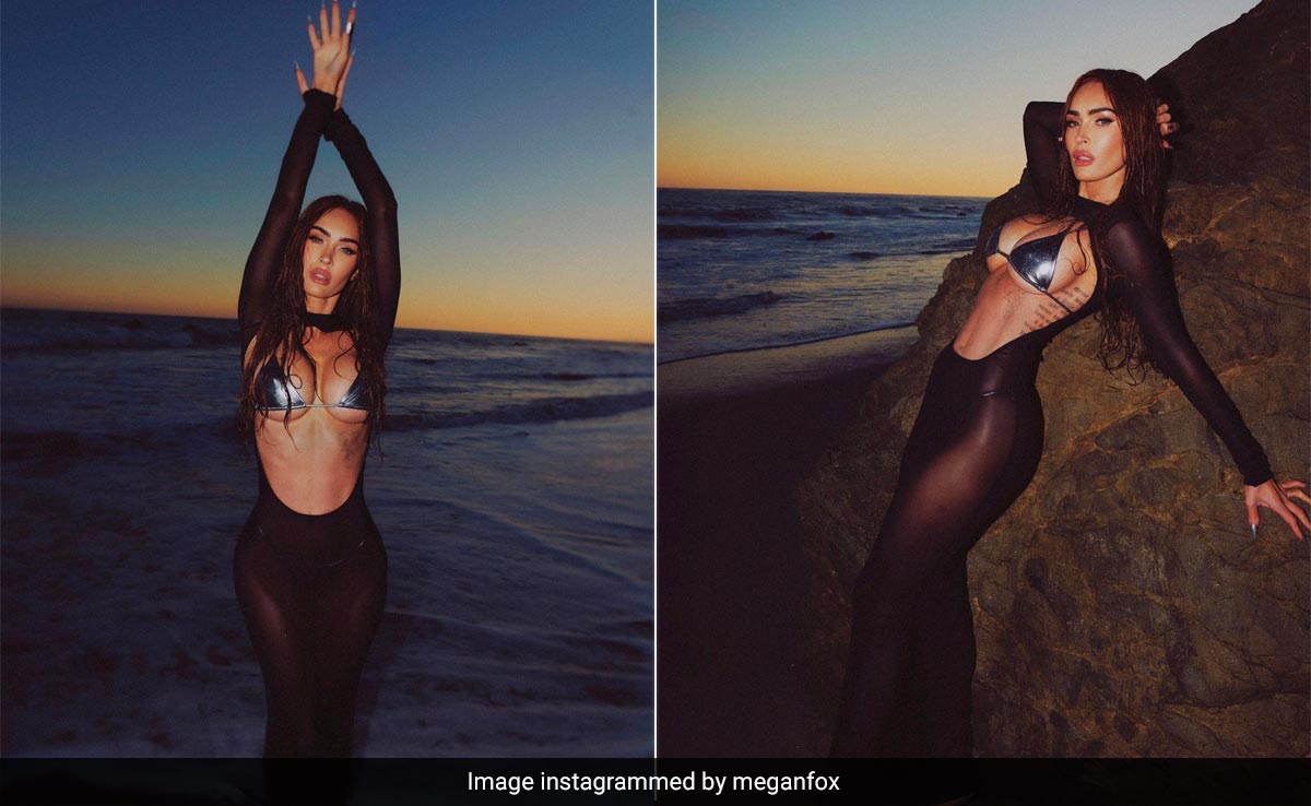 Megan Fox is still in her mermaidcore era and ever so glamorously. The American actress has a strong bend towards body-grazing silhouettes. Recently, she gave a gothic spin to mermaidcore as she slipped into the most flattering sheer piece. She opted for her own version with black and indeed, fashion aficionados are in for a hot style treat. Looking like an absolute style goddess, she opted for a sheer dress that came with a massive cutout on the front. She paired it with a metallic black string bikini top. She looked fabulously appealing as she posed like a total queen.