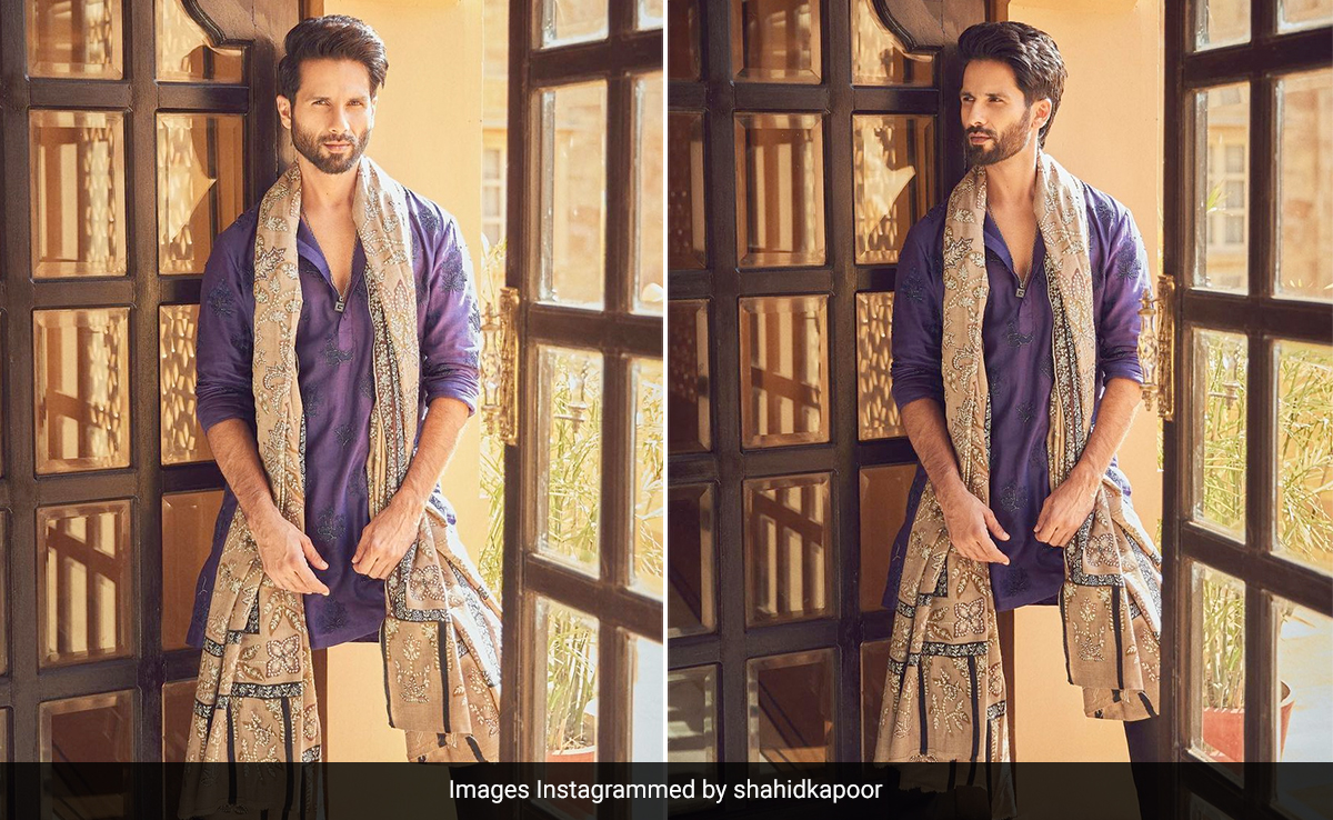 It isn't easy to put up a traditional look that's equal part comfortable and equal part stunning. But you can always take inspiration from Shahid Kapoor who has expertise in this area. Once, he shared pictures wearing a gorgeous purple kurta featuring complex embroidery work. He teamed it with chic black pants. For some more drama, he placed a printed beige shawl around his neck.