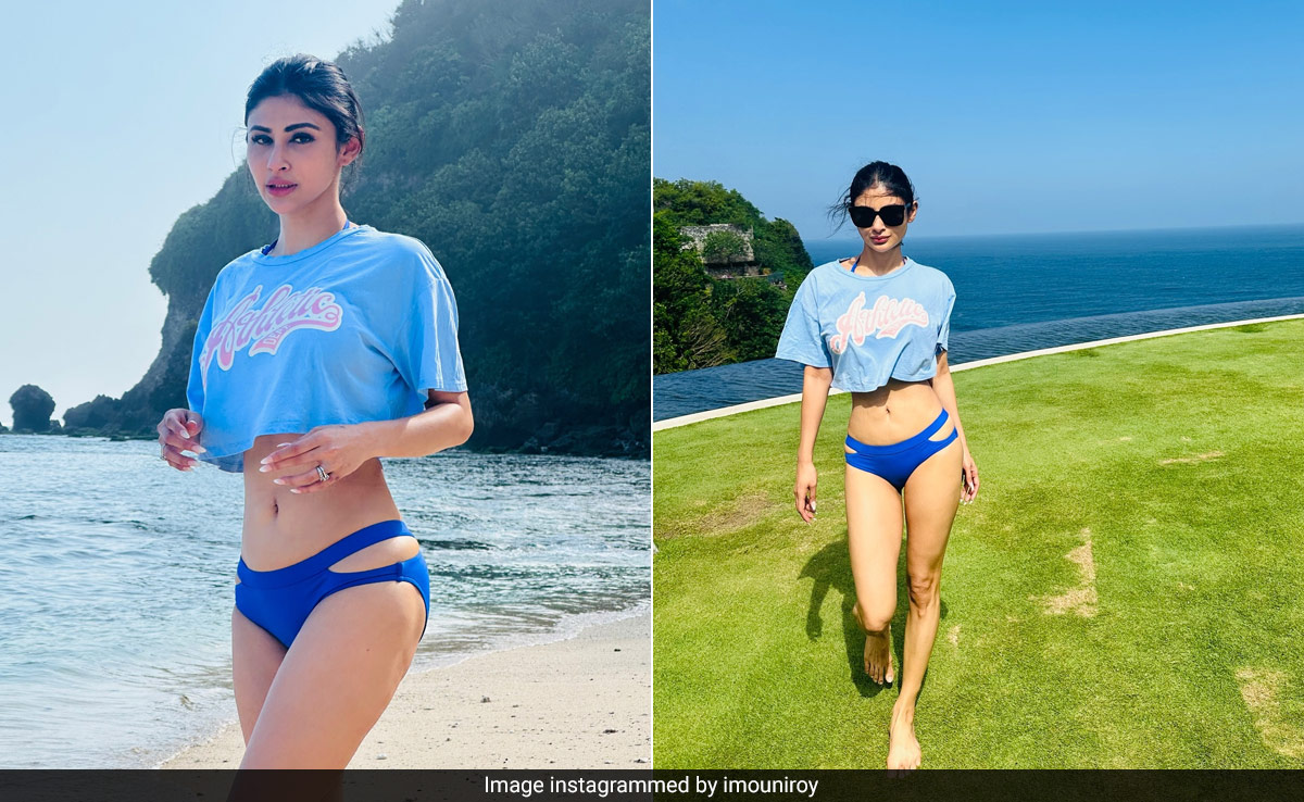 Monday blues are generally known to be mundane as ever but not when you're Mouni Roy. The Bollywood actress is turning that notion on its head with her latest set of pictures. Mouni is currently holidaying in Bali and through Instagram, has given us a taste of the Monday blues that she is experiencing. In a series of photos, Mrs Roy is seen posing against the blue waters of Bali in an outfit that competes with its shades. She picked a blue bikini that featured side cutout details on the bottom with a matching halter neck top. Over it, she layered an oversized fitted blue crop top while adding in a pair of dark sunglasses and her hair pulled in a bun. She captioned it, "Sorry not sorry for spamming your feeds!!!!! Grand & Tragic!" Don't be apologetic Mouni, because we can't get enough of your big beach energy.