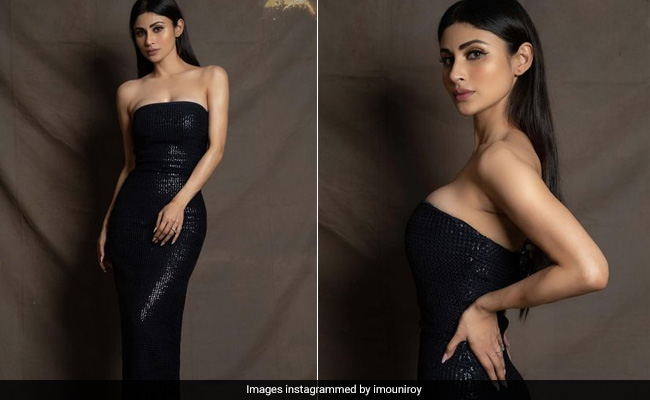 In a recent set of photos that Mouni posted on her Instagram account, the actress is seen in the classic little black dress. Created by designer Rudraksh Dwivedi, Mouni's gown was a floor-reaching number in a slim column silhouette. Covered in subtle black sequins, the gown with a strapless neckline fit Mouni like a glove.