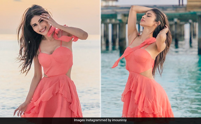 Is it too late for the #hotsummergirl aesthetic? Well, we don't think so. And actress Mouni Roy is surely making a case for the same as she gives us a dose of her vacay style. In a beautiful coral peach dress, the actress is having the best time of her life. Vacationing in Maldives, the actress is making sure to keep her style on point too. She was seen adorning this pretty mini number which featured a corset style with cutout detailing. The fit and flare style of the dress made it a standout number. It featured a strappy pattern with a sweetheart neckline which added oomph to the overall look. Her wavy open tresses and natural makeup look complemented her beach style.