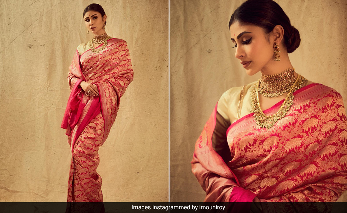 Come festivals, and our Bollywood divas get busy bringing their best sartorial foot forward. From glamorous shararas to the best of contemporary fashion, with Ganesh Chaturthi celebrations, the actresses have set the mood right for this year's festive season. Leading from the front is Mouni Roy. The actress in her latest Instagram post confessed that she is a “lover of the classics.” And, we couldn't agree more. The confession came alongside a set of breathtaking pictures of the actress, decked up in a pink saree. Mouni Roy wore the gorgeous saree to the Ambani Ganesh Chaturthi celebrations on September 19. The drape, with traditional golden prints all over, was from the shelves of clothing brand Raw Mango. Mouni complemented her saree with a half-sleeve golden blouse, and traditional gold jewellery consisting of earrings, a choker necklace and a haar. A sleek bun hairdo looked elegant. Her feline eyes were accentuated with kohl and bold eyeliner. Mouni wore matte finish skin with tinted cheeks and truffle-brown lips. Mouni's BFF Disha Patani has said it on our behalf. The actress commented, “The most beautiful” and can you disagree?
