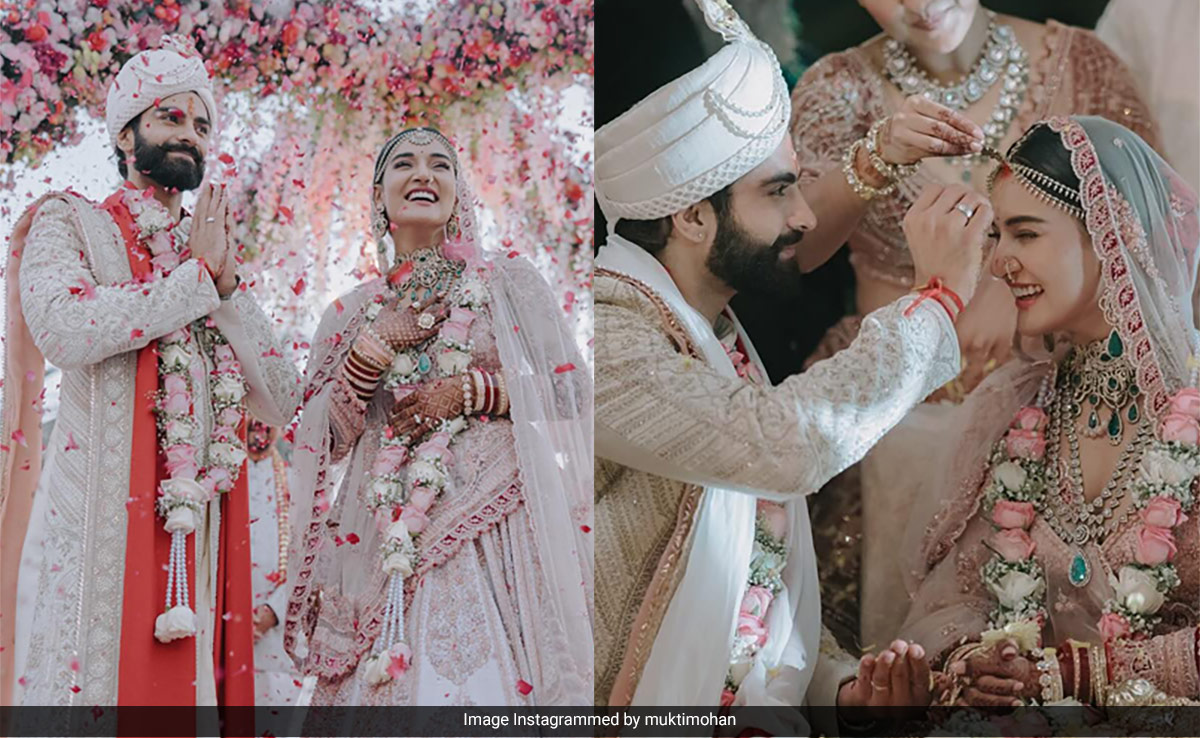 It can officially be considered the year for dreamy affairs and as we move closer to the year end, we see a bit more of them. Well, congratulations are in order for dancer-slash-actor Mukti Mohan and Animal actor Kunal Thakur as they tied the knot recently. It was truly no less than an ethereal affair with wedding fashion quotient at its peak. The refreshing realness is reflected beautifully with a perfect blend of pastels. The couple shared their intimate wedding ceremony pictures on Instagram and posted, "In you, I find my divine connection; with you, my union is destined. Grateful for the blessings bestowed by god, family and friends. Our families are ecstatic and seek your blessings for our journey forward as Husband and Wife." High on love and fashion, the couple looked dreamy as they complemented each other in beautiful wedding attire. Mukti made for a beautiful bride in a gorgeous pastel lehenga that was adorned with intricate traditional embroidery. The dark contrasting details on the number added a stunning edge to her look. Kunal complemented her in an ivory sherwani that was paired with a red scarf.
