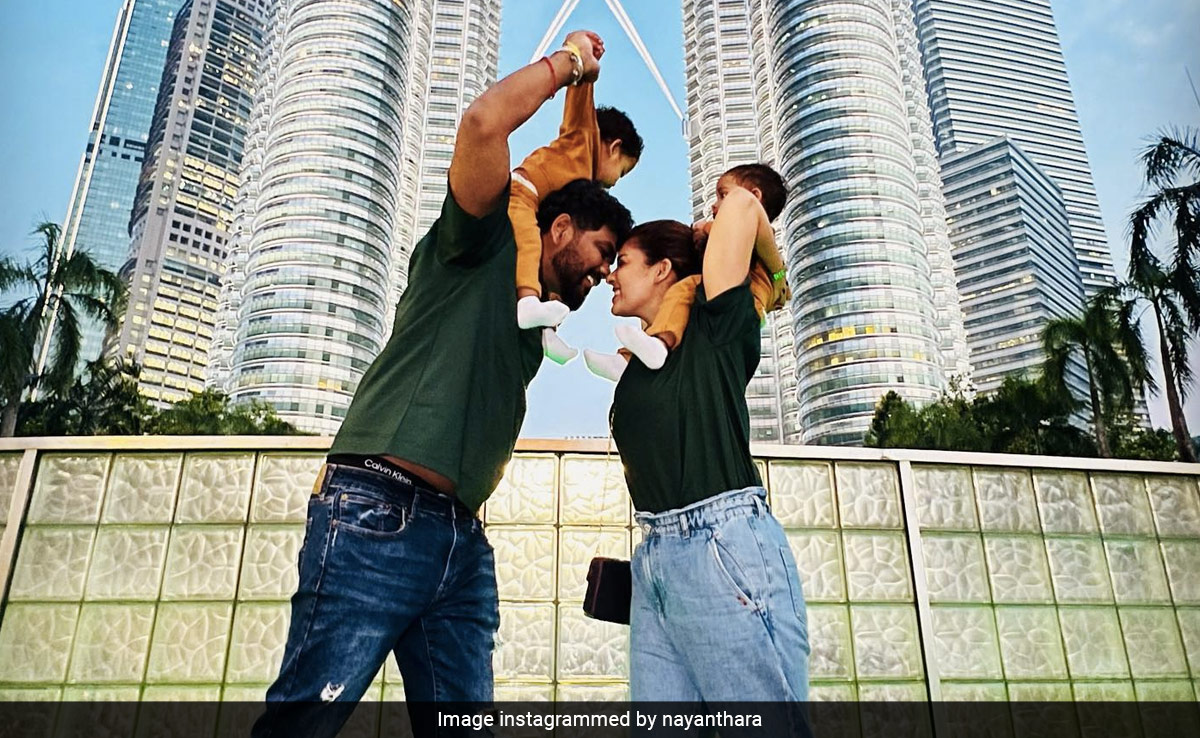 Nayanthara and Vignesh Shivan, along with their adorable twin sons, Uyir Rudro Neel and Ulag Daiwik, are the epitome of family goals. The actress and director duo often share precious family moments with their Instagram followers. On September 26, a special occasion marked the calendar – their sons' first birthday. So, where did they choose to celebrate this milestone? Malaysia it was! The couple posted a gorgeous photo of themselves standing in front of the iconic Twin Towers. In this heartwarming snapshot, their little ones perched comfortably on their parents' shoulders, while Nayanthara and Vignesh were facing each other. The reason behind this unique birthday celebration at the Twin Towers was beautifully explained in the couple's caption: "My TwinPowers. HBD to U2! 1 year of smiles, happiness, and blessings! Happy birthday to my loving #Uyir & #Ulag! May you both Stand Tall in this life, bringing a lot of happiness to everyone around you! Love you, my babies! You have made our life soooooo sparkling & colourful! It's a festival every day! With U2! My Uyir & my Ulag. Amma & Appa love you 2! Toooooo much. Wanted to celebrate Ur first birthday near these Tall powerful Towers who are twins just like U2. Thanking God for making it happen sooo nicely! Blessed as always," accompanied by a shower of red hearts, blessed faces, and protective evil eye emojis.
