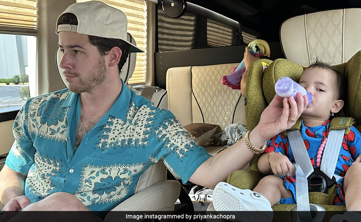 Nick Jonas and Malti Marie Chopra Jonas are the cutest and the most fashionable father-daughter duo. Case in point: Priyanka Chopra's photo album. The actress shared a series of photographs to wish her husband Nick Jonas on his birthday. While the mushy moments of the couple and the heartfelt caption left us in awe, the last picture of Priyanka's carousel caught our attention. It featured Nick Jonas feeding Malti Marie milk from a bottle. We couldn't help but notice the father-daughter twinning in printed blue outfits. Nick sported a sky blue shirt and shorts combo, which screamed tropical summer from a mile away. The easy breezy pick was adorned with white patches and floral prints. Nick opted for a golden wristwatch and a baseball cap to complete his cool father look. As for one-year-old Malti, she looked charming in her blue tee and shorts. The co-ord featured a vibrant red print that added a perfect pop of colour. The little fashionista completed her look with elegant earrings and a pair of comfy white Crocs. They are surely twinning and winning the fashion game like no other.