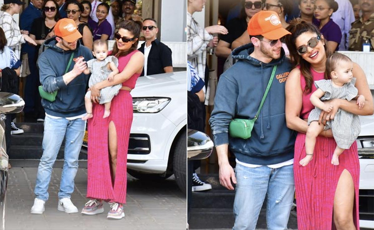 Priyanka Chopra and Nick Jonas have made plenty of trips to her Indian base in Mumbai but this time has proved to be extra special. Why? Because this journey of theirs had a very adorable little addition on the journey. Their daughter Malti Marie Jonas arrived in Mumbai for the very first time with her superstar parents this Friday afternoon. Expectantly enough, mom and dad looked as casual and comfortable as ever for a long haul flight with an infant but it was that very little girl who stole the show as they greeted paparazzi at Mumbai airport.