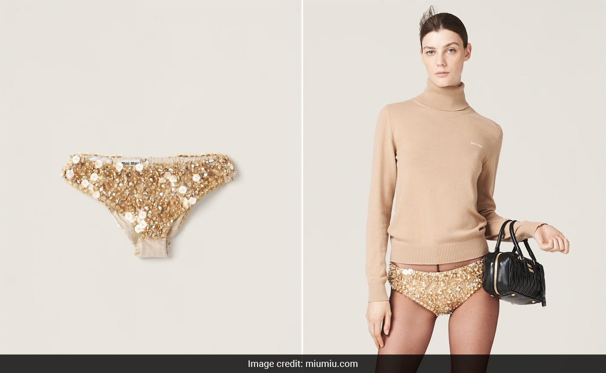 This season, Miu Miu premiered a line of undergarments, under wear specifically, with an image of their latest piece posted on Instagram. The photo is of a Miu Miu silk and wool panty in a sandy shade of beige. Its highlight were the self-coloured sequins encrusted over the front of its bikini-cut style. According to Miu Miu's official website, the shimmering aspect of the under wear aligns with the provocative attitude of the brand with a distinctive style.