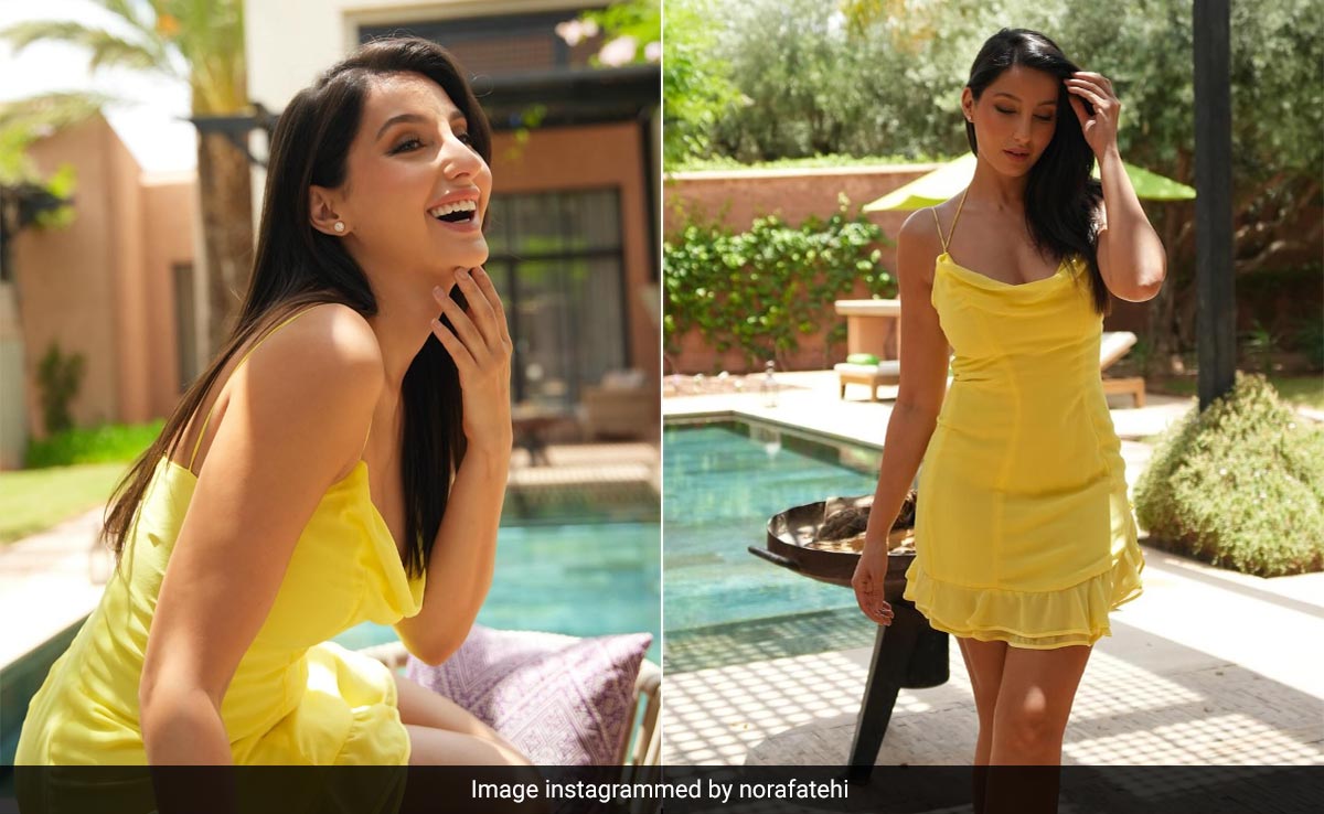 Nora Fatehi has given us all the holiday outfit goals we needed on her recent holiday. The Madgaon Express actress took the internet by storm when she shared pictures from her Moroccan staycation wearing a bright yellow mini dress. The actress looked like she was cherishing each minute of her downtime at the Fairmont property in Marrakech, Morocco. Let us now take you through all the details of Nora Fatehi's outfit as she posed heart heart out by the pool.