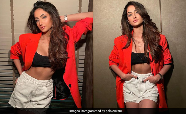 For summer style statements, most of us are going back to casuals. Shorts and crop tops are a must-have for this season and all of us agree with that. But, how can one turn a casual ensemble into something fiery? Well, Palak Tiwari has the answer. The actress is a rising fashion icon and there are enough reasons for it. Palak showed us how to add a stylish jacket to a casual outfit in order to amp up the fashion game. For her latest photoshoot, she wore a fiery orange blazer that perfectly complemented her solid black crop top and white shorts. The sleek cuts of the jacket stood in contrast with the tattered details of her shorts while the black of her top added more dynamism to the look. Dolled-up eyes, contoured cheeks and pink lipstick completed her makeup. Golden loop earrings framed her face. She left her tresses loose, letting them cascade down her shoulders.