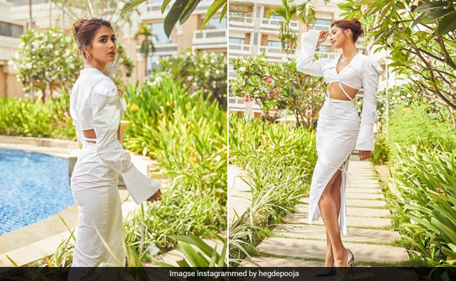 Amping up the glamour quotient on our feed today is actress Pooja Hegde. On a beautiful sunny day, the actress is definitely acing her best summer fashion in a chic white co-ord set. Being a fashion enthusiast at heart, actress Pooja Hegde has never left a chance to impress us with her impeccable looks and style. And this time she is slaying it right in a breezy white co-ord set. The attire featured a stunning collared neckline crop top, paired with a midi skirt which had a side slit. She notched up the ensemble with metallic peep toes and her tied bun and minimal jewellery look is absolutely perfect for summer days. The all-white ensemble is perfect to brighten up any day!