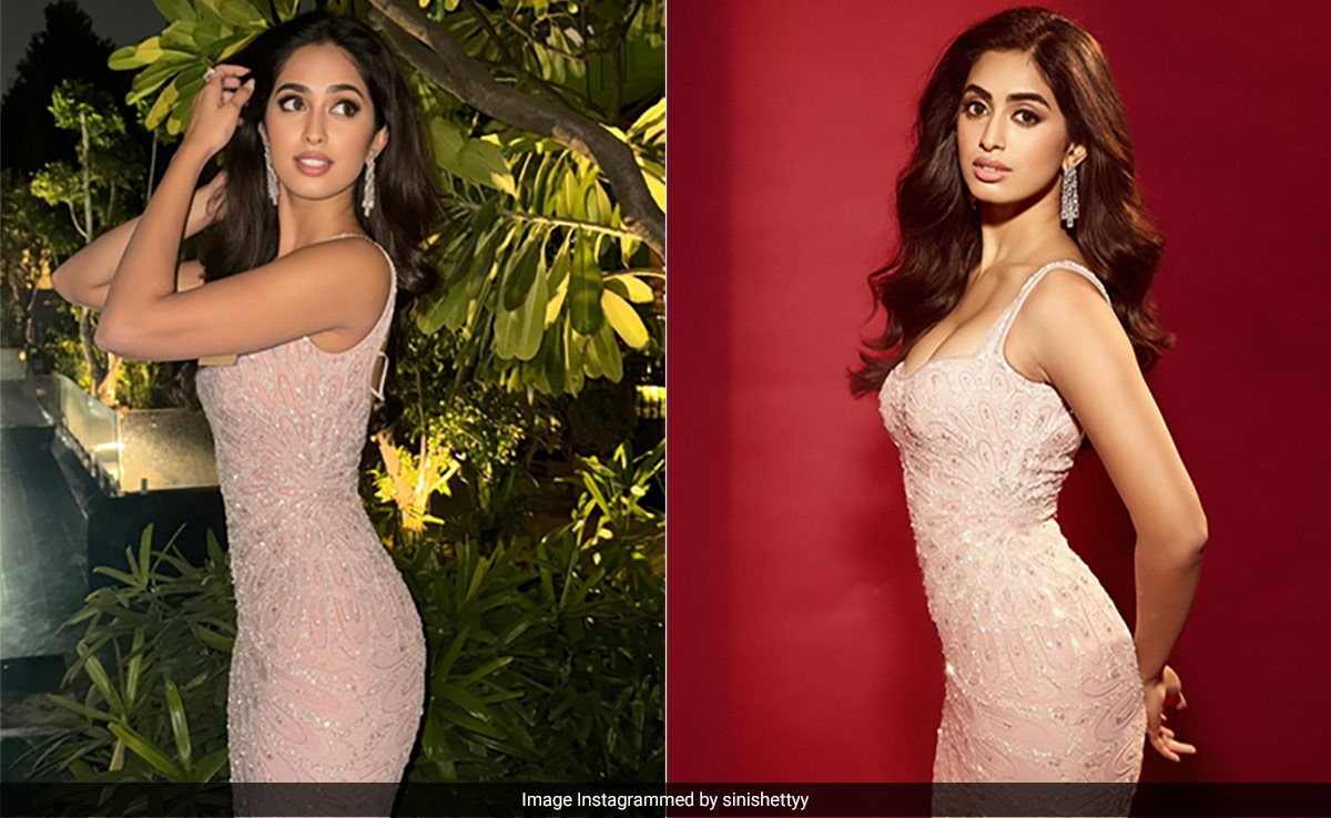 Sini Shetty, who won the Femina Miss India title in 2022, is all set to represent India at the upcoming Miss World 2023 pageant. The elaborate grand finale will take place in March 2024. While the country cheers for her, she continues to sparkle and scintillate. Sini attended a welcome dinner hosted by Miss World in Delhi and charmed everyone with her pastel wardrobe choice. The strap gown featured a plunging box neckline, with a body-hugging silhouette that accentuated Sini's toned body. The gorgeous gown extended into a glamorous train that followed. The blush pink gown from designer Bhawna Rao showcased delicate beadwork and fine embellishment. The diva wore a pair of studded dangling earrings and silver strap heels to complement the outfit. Sini opted for well-defined winged eyeliner, shimmery eyelids, rosy cheek tint, and matte pink lip colour for makeup.
