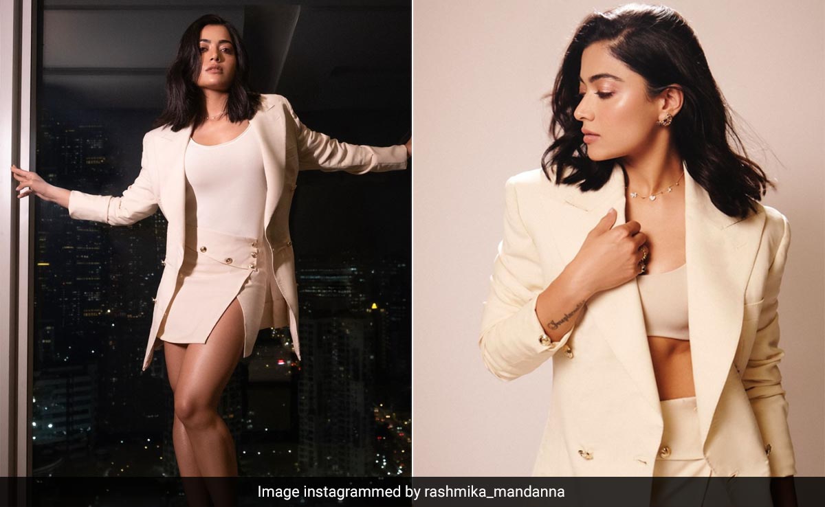 Rashmika Mandanna's style offerings will truly make dressing easier for you. The sun-drenched days of summer come with a whole new fashion sphere. Rashmika's choice of monochrome fits has always served as a minimalist statement. The Animal actress is back at her fashion game once again. Ditch the usual summer styles for simple yet statement monochrome numbers to make summer stylish. Rashmika gave power-dressing a hot spin in an ivory look. She paired a chic ivory top with a mini skirt that came with a side slit. Her layering game was right on point with a matching blazer that instantly added a chic edge to the look. Her choice of bold heels was a fitting pick for the attire. To keep up with the summer aesthetic, she aced a nude matte glam and her open tresses completed the look.