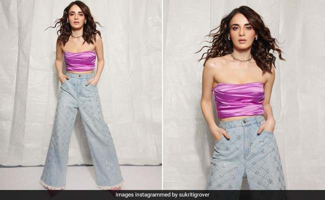 Attention everyone, Radhika Madan just treated us to a look that we are sure you will love too. For the promotions of her upcoming film, Kuttey, Radhika opted for a strapless bright pink satin tube top with a pair of wide-leg denim jeans. There was nothing basic about her jeans though. Her light-washed jeans had crisscross embellishments all over and subtle white fringes at the hem. We loved the way Radhika sealed the look with a pair of pink pointed footwear. For accessories, she picked earrings, a statement neckpiece and rings. Her makeup showed contoured cheeks, shimmery eyeshadow, mascara and a dash of nude glossy colour on the lips. She left her hair open in waves.
